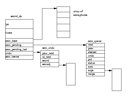 System V IPC semaphore objects each describe a semaphore array and Linux uses the semid_ds